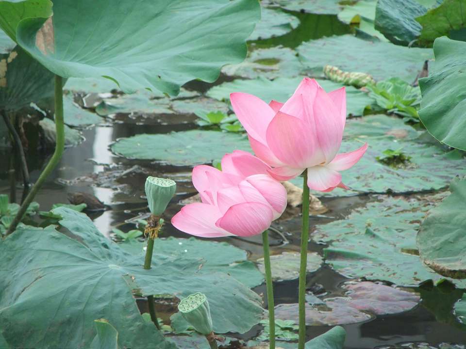 新北市新月橋板橋端的「新海二、三期人工濕地」正是荷花盛開的美好季節,對於喜歡賞花和攝影的朋友,建議在晴天的早上9點至11點之間前往觀賞荷花,此時的光線最為適宜,可欣賞到荷花豔麗粉色與翠綠荷葉的迷人景色。若逢春雨連綿,雨珠停留在荷葉上,與荷葉相互輝映,更能賦予荷花獨特的觀感。