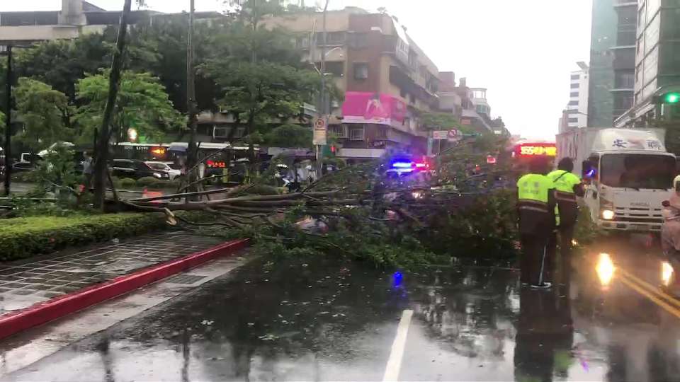 受到鋒面通過影響,台北市從24日清晨開始下起大雨,雖然沒有造成淹水,但在上午近9時許,內湖區瑞光路與港前路口,發生路樹倒塌占據車道,讓原本上班時間就交通雍塞地內科,更是難以通行,警方隨即到場指揮交通,並調撥車道維持雙向通過,直到中午時間才將路樹完全移除。