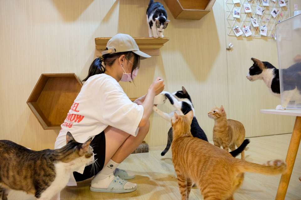 高雄市青創黃思瑜是1位8年級生,從小就喜歡撿小動物回家養,念大學時和好友開始參與領養、送養、救援流浪貓,在讀書時就決定以此為志業,畢業後創辦「養一隻貓吧」貓咪咖啡館,並獲得高市府青年局的青創補助,讓等愛的流浪貓有中途驛站可以居留,也讓新主人可以與貓咪長時間相處後再進行領養,開店至今已媒合500多隻流浪貓找到新家。