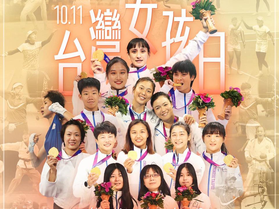 10月11日台灣女孩日,總統蔡英文特別在臉書粉絲頁中,為今年杭州亞運參賽女孩致敬,因為每一位女孩的奮戰,她們堅毅的表情、發亮的眼神,都讓大家留下深刻的印象,當然整個台灣代表隊選手的努力,拿下了19金20銀28銅亮眼成績。