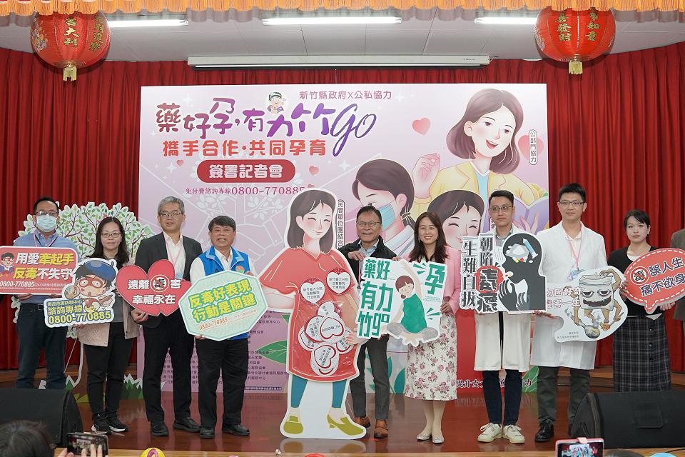 新竹縣衛生局為協助藥癮孕婦,推動「離毒好孕到-藥癮懷孕婦女醫療支持補助計畫」,以「藥好孕,有力竹Go攜手合作、共同孕育」邀集新竹地區8醫療院所、30多個新竹在地網絡社團共同響應。希望透過跨界協作,結合不同領域夥伴的努力,達到戒毒癮、找回健康、守護胎兒的三好目的,竹縣毒品危害中心將結合各方資源,為有毒癮者織一張縝密的網,接住每一個深受毒品困擾的人及家庭。