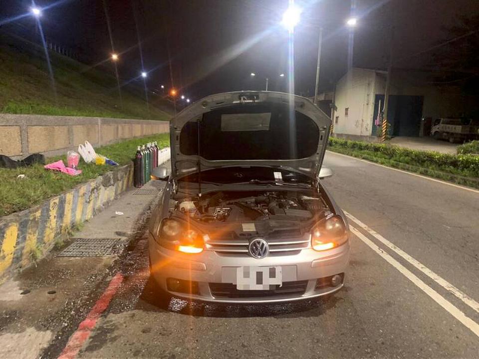 新北市蘆洲區環堤大道17日凌晨發生汽車冒煙意外,當警消趕抵現場時,發現指示汽車水箱沒水,灑水灌救後沒有立即危險,而同時警方卻發現,一旁路上放著好幾罐笑氣鋼瓶、毒品咖啡包、毒品等,駕駛還聲稱不是他擁有,是在路邊撿到,堅持到最後才坦承,經警詢後依違反毒品危害防制條例、毒性及關注化學物質管理法送辦等罪移送法辦。