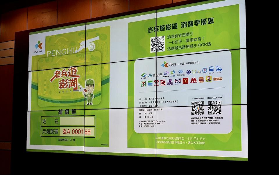 客製「老兵遊澎湖補給證- iPASS一卡通儲值卡」。翻攝澎湖縣政府