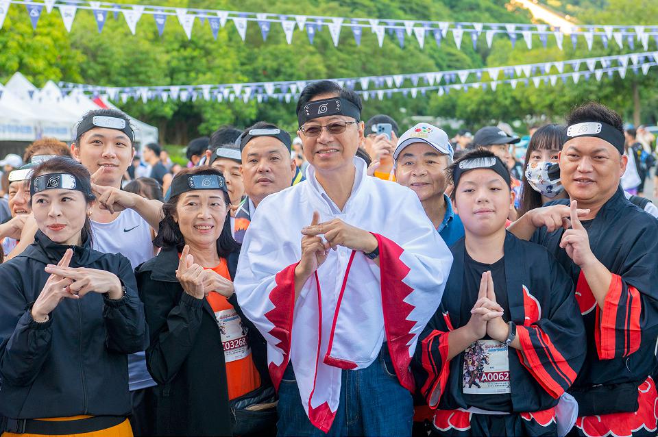 市長張善政指出,「火影忍者修煉嘉年華」於11月4日至11月12日舉辦,今日的主題路跑,推出免費名額、限定火影物資、全齡同遊再送好禮等多項吸睛亮點,吸引上萬人前來參加。這次路跑活動特別設計「全齡組」,以組為單位報名,只要報名人中有65歲以上長輩,或有年齡相差50歲的成員,就可以獲得專屬的豐富物資。全齡組報名情況非常踴躍,一開放就秒殺額滿,可見大家都很期待適合全家大小一起參與的休閒活動,這次報名人最大95歲、最小1歲,年齡差距高達90多歲。