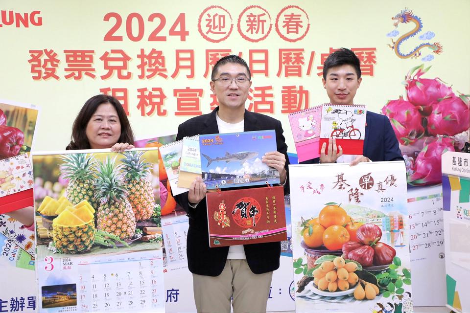 持發票換月曆、日曆、桌曆迎新年開跑 歡迎民眾踴躍捐發票做公益,今年的月曆將結合施政亮點、桌曆將融合卡通人物IP,相信大小朋友都會喜歡,並響應節能減碳做環保,同時預祝基隆市民龍年吉祥、四季平安,歡迎全國好朋友來基隆踩點與享受美食。(記者劉逸撰/基隆報導)