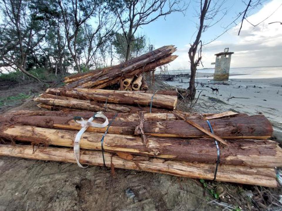台南市政府水利局表示,經洽林業署嘉義分署、專家建議工法,依點工購料辦理採購太空包、竹樁、木樁等材料及加工,18日已完成施工便道整理及材料運送,目前機具及材料已在現場完成整備,待退潮水位條件許可時即可進行太空包封堵及打設木樁加固作業,期能於下次大潮來臨前完成。(記者余珩維/台南報導)