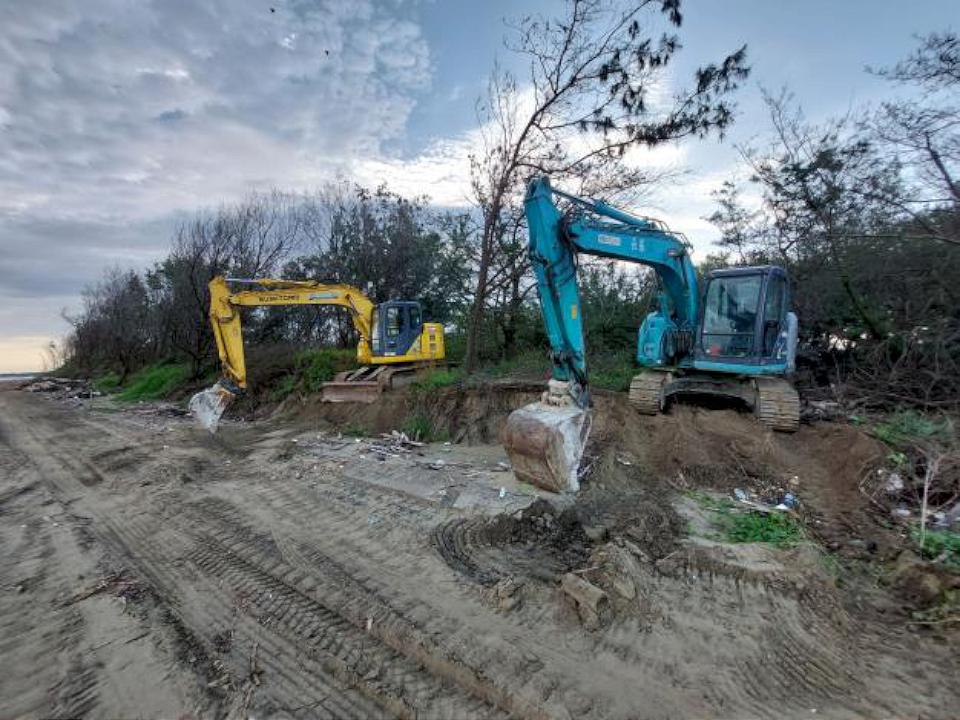 台南雙春海岸保安林12公尺寬破口搶修。翻攝台南市政府