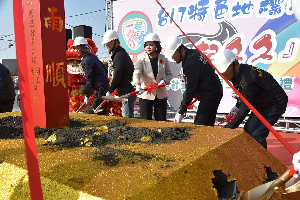 雲林縣長張麗善擔任主祭官為台17特色地標驛站『一起久久』動土開工。翻攝雲林縣政府