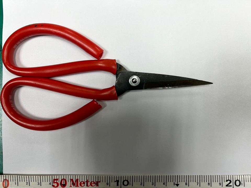 警方表示,接獲參選人團志工通報後,就見到紅衣男子走過馬路前來,就看到他手中的剪刀,因此立即上前奪下他的剪刀將人壓制,隨後江男子帶回釐清案情,後續將依恐嚇公眾安全、恐嚇罪移送偵辦。(記者余珩維/台北報導)