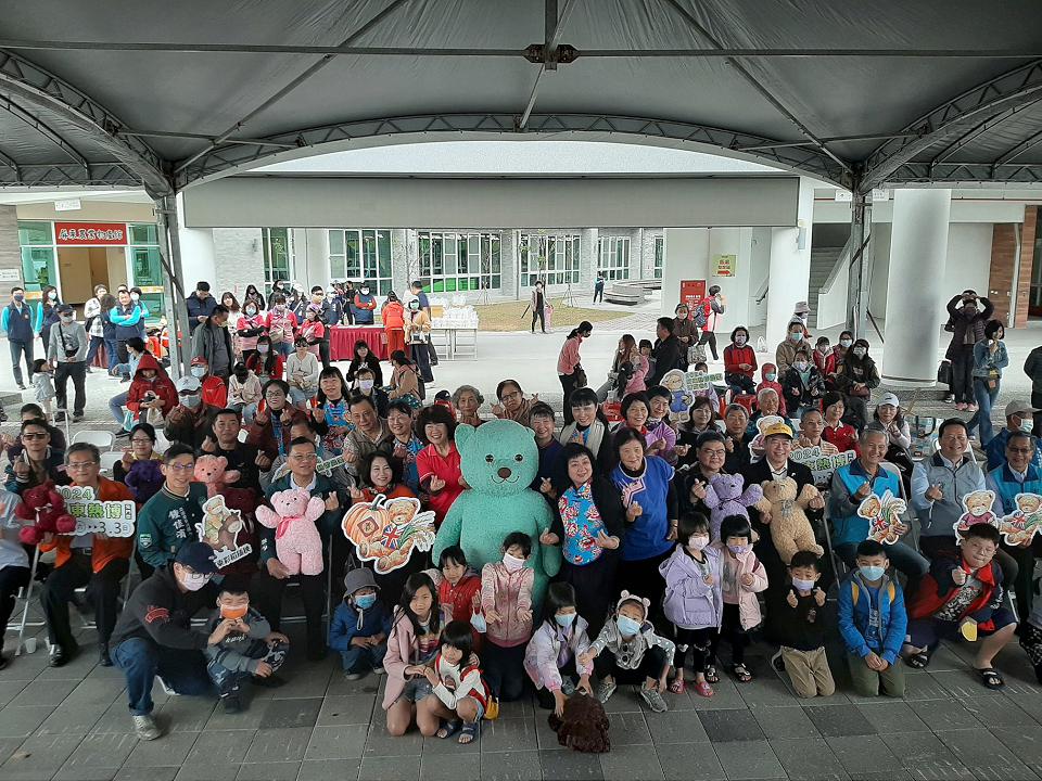 摸彩抽到泰迪熊的幸運民眾與周縣長合影。(圖/記者戴英薇)