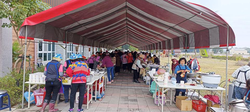 現場新鮮現煮上千份特色飯湯,免費提供鄉親大快朵頤。(圖/記者戴英薇)