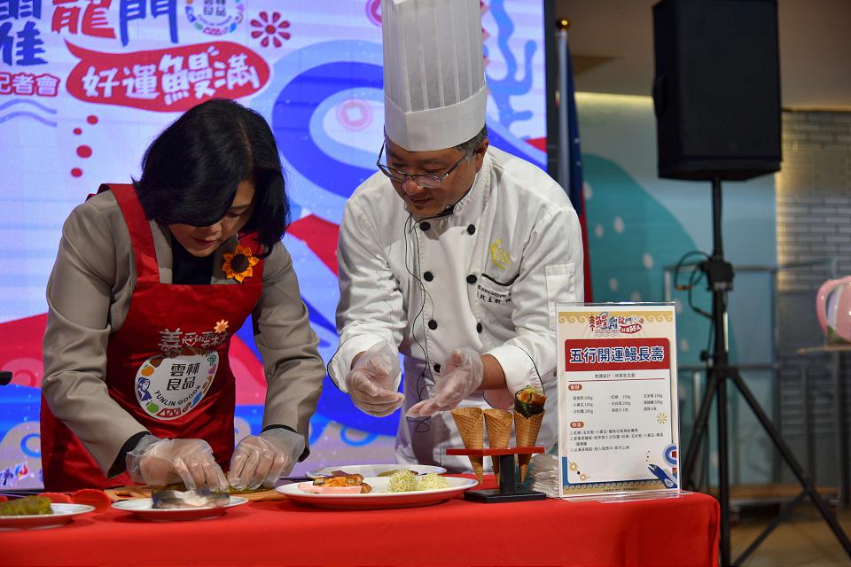 縣長張麗善與三好國際酒店林家宏主廚示範美味鰻魚料理。翻攝雲林縣政府