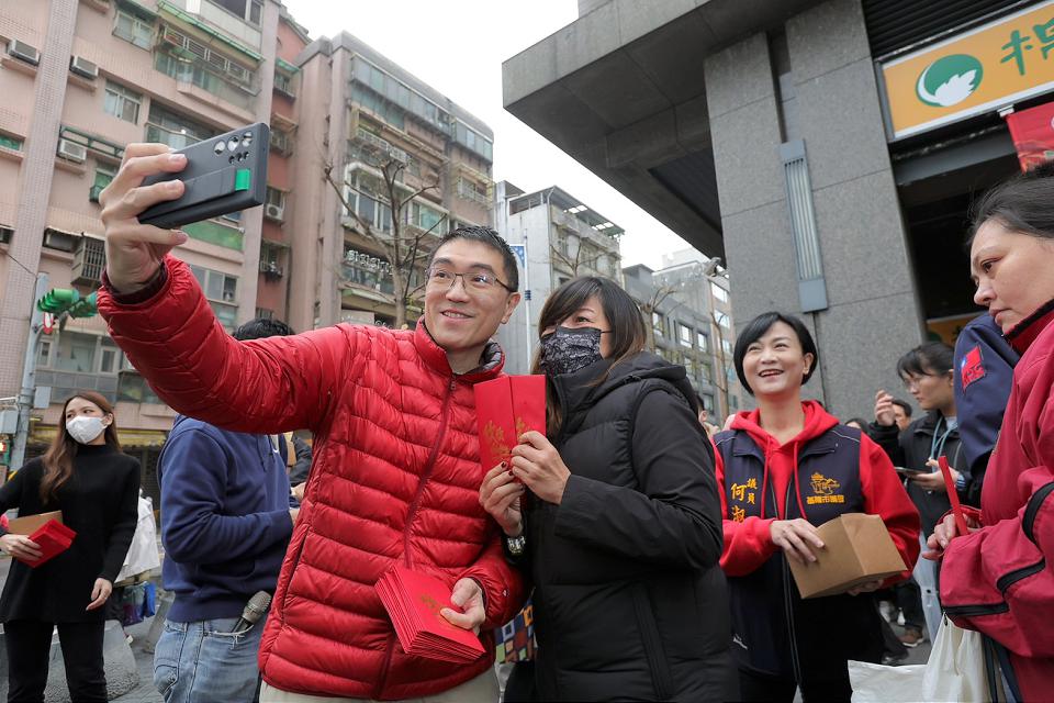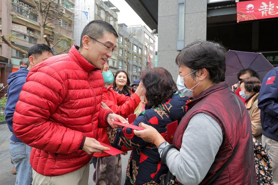 現場群眾為了能拿到從市長手上發放的1元紅包並合照,儘管手提菜籃與年貨,仍願意大排長龍等候,還有家長帶著孩童一起排隊領紅包,現場喜氣洋溢,互道新年快樂,充滿濃厚的新年味。(記者劉逸撰/基隆報導)