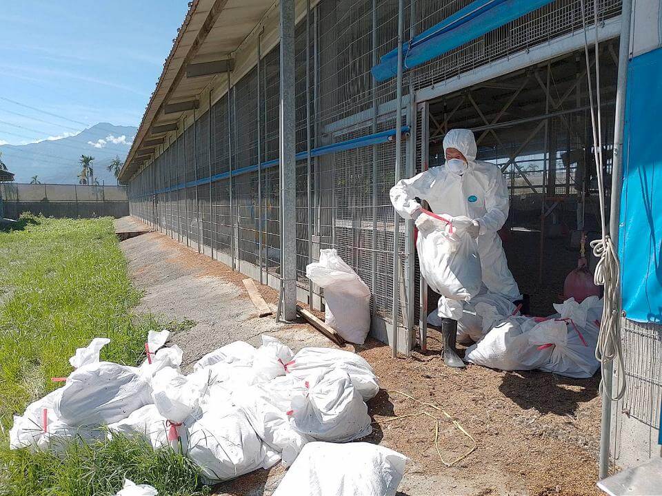 驗所檢驗,20日確認感染H5N1亞型高病原禽流感病毒,動物防疫所21日立即往前執行撲殺作業,共撲殺1萬1661隻家禽,並完成協助業者廠區清潔與消毒工作。
