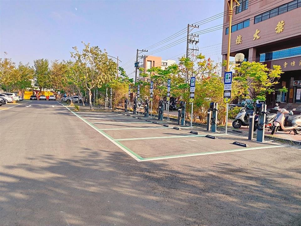 鹿港鎮北區遊客中心停車場設有16席電動車充電樁。翻攝彰化縣政府