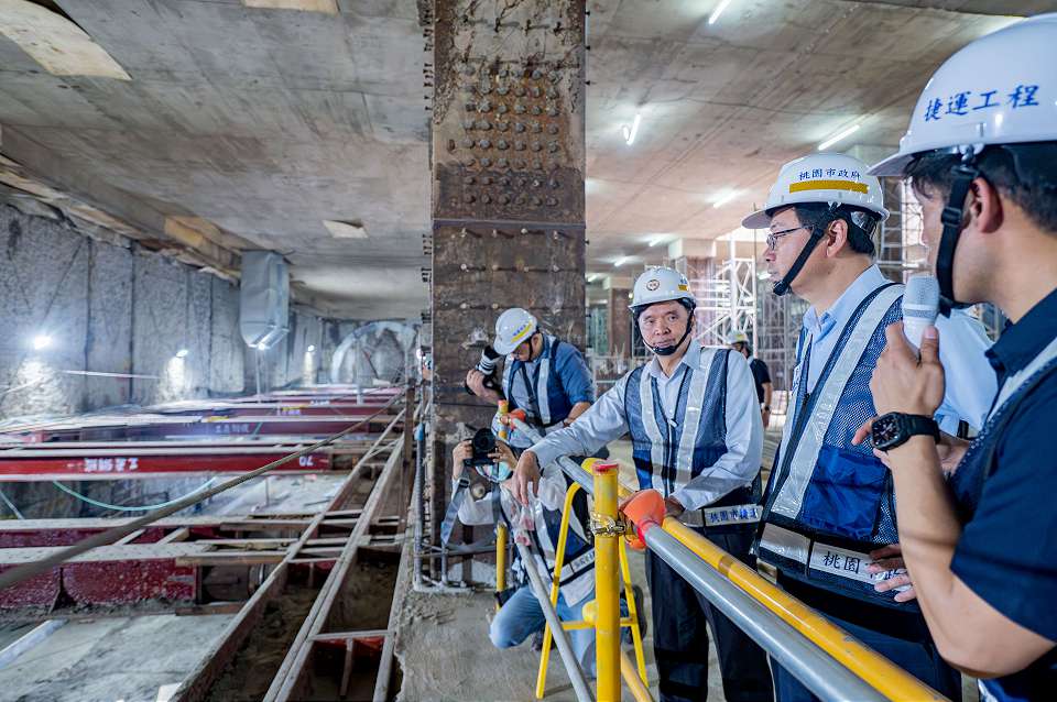 桃園市長張善政視察捷運綠線G07站。翻攝桃園縣政府