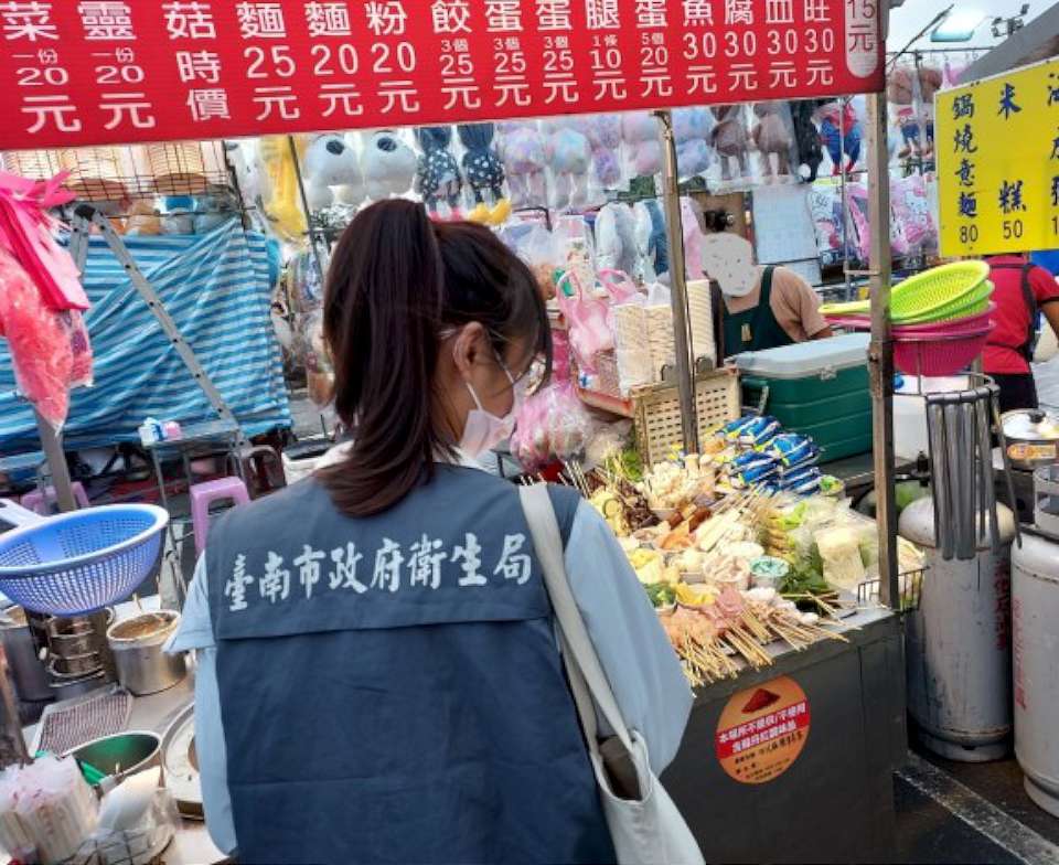 台南市衛生局查核「本場所不提供/不使用含蘇丹紅調味品」標章張貼成效。翻攝台南市政府