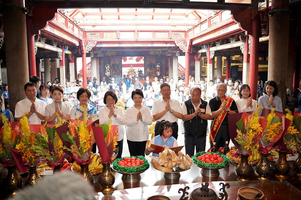「義魄千秋2023全國義民祭在新竹縣」義民祭啟動儀式24日在新竹縣新埔褒忠義民廟登場,來自新埔國小四年級學生范于霏,在典禮中以流利客語朗讀祝文,她純熟的海陸腔客語及沉穩表現,顯示新竹縣從小扎根、推廣客語的成效。