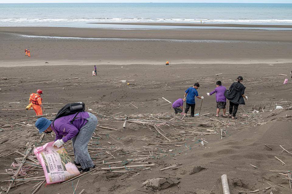 這次的淨灘活動,有企業員工、在地居民、學生一起參與。翻攝桃園市政府