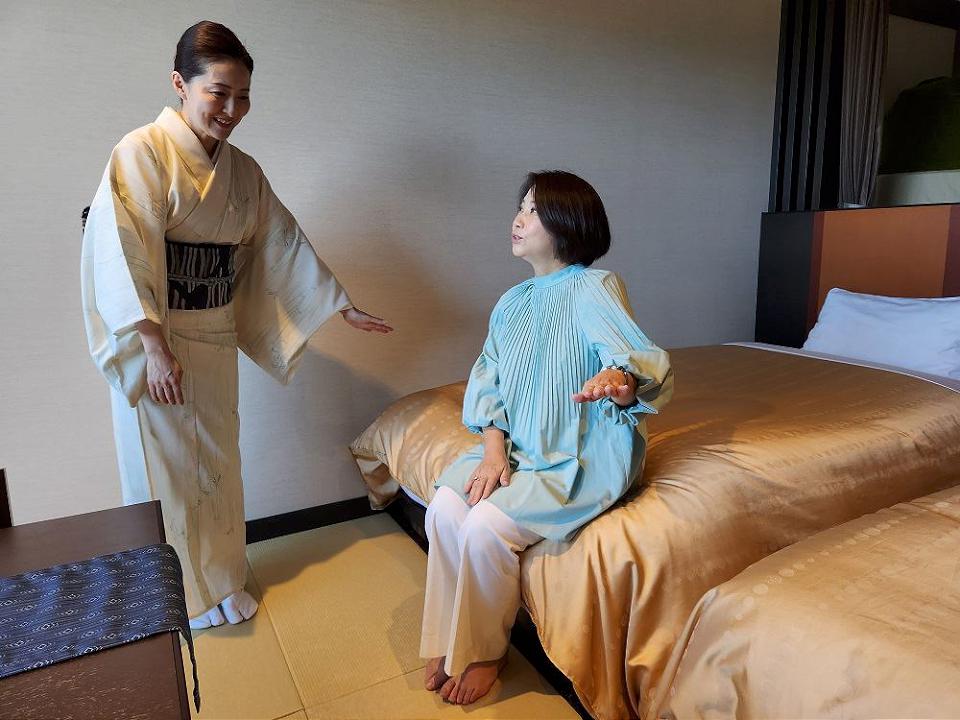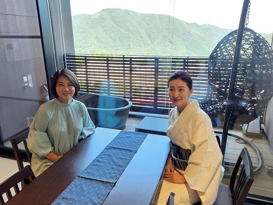 縣長周春米對旅館內的高齡化設施特別有感,從房間原本是榻榻米,因應高齡化社會,改在榻榻米舖設床舖,座椅的高度也調整,友善長者入寢及就座,非常貼心。泡湯池的規劃舒適,整體的景觀設計融入自然環境,有些甚至可以成為網美景點,還有針對親子設計的遊樂設施,全齡化的規劃,提升遊客的體驗。