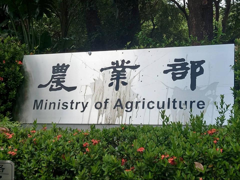 農業部銜牌遭砸雞蛋、潑墨水。讀者提供