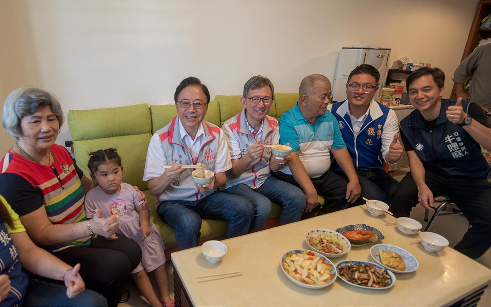 市長張善政與新入厝的家庭一起用餐。翻攝桃園市政府