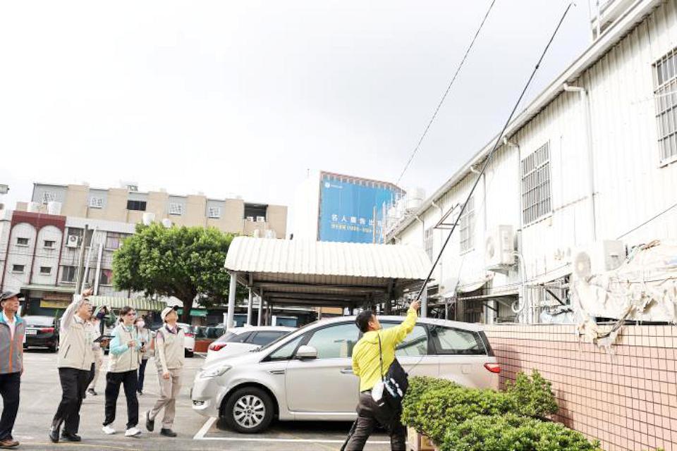黃偉哲使用「電子天溝棒」連結手機、iPad現場查察。翻攝台南市政府