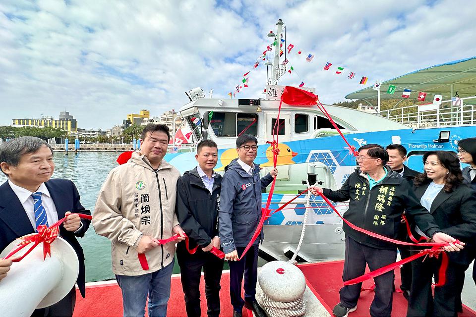 高雄市政府與環境部合作新造三艘電力驅動渡輪,其中首艘交付使用的「雄棧1號」24日正式啟用,新船會優先提供旗津-鼓山航線載運服務,將最好的渡輪留給旗津與鼓山居民使用,市府亦會持續加速汰換老舊渡輪,提高服務品質。