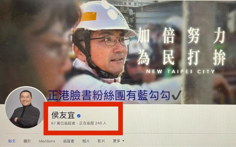 詐騙集團手法越來越囂張,不但盜用藝人、名人的照片創建帳號,連剛卸下總統參選人侯友宜,都成了詐騙集團的目標,在臉書上盜用照片、名稱,完全複製正版侯友宜臉書專頁,27日侯友宜臉書專業貼文鄭重聲明,請大家一定要認證藍色小勾勾,才不會上當受騙,同時已經向新北市警局報案。