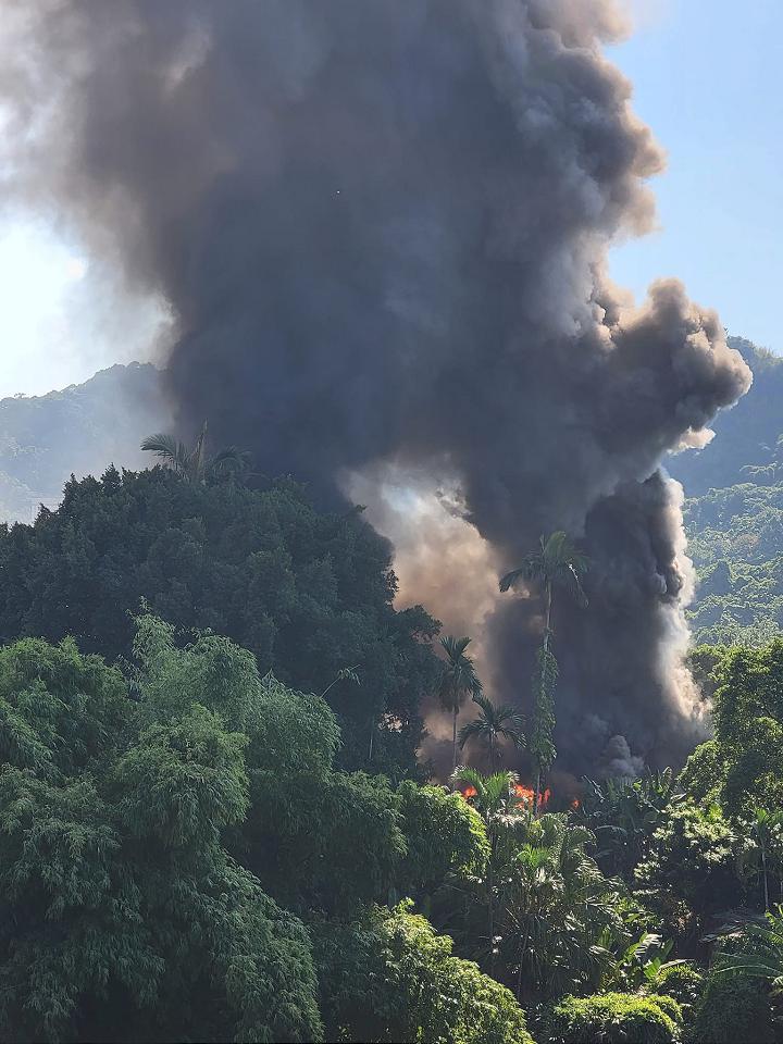 台北醫學院旁山坡上的宮廟,遭大火吞噬濃煙直竄。翻攝信義區三兩事臉書