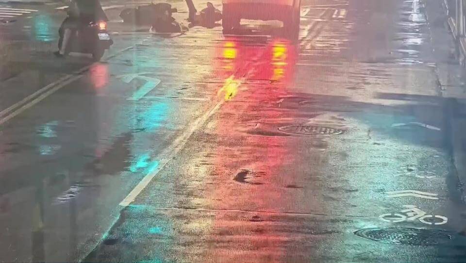 陳姓女子酒駕撞飛停等紅車機車。畫面讀者提供