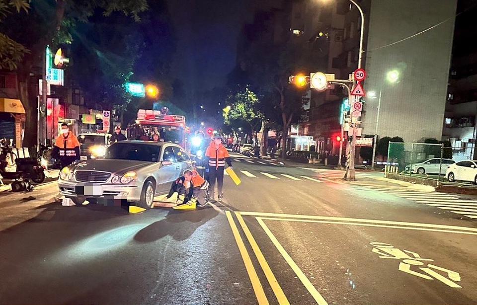 警方初步調查,事發前楊姓死者(50歲)在行人穿越道上跪爬,不少行經車輛發現後紛紛閃避,甚至按喇叭閃大燈示警,但楊姓死者依然未理會繼續爬行,不料徐姓駕駛(40歲)從中華路2段416巷口左轉時,疑似天色昏暗視線不良,直接將人輾壓過去,當場造成楊姓死者受困車底。