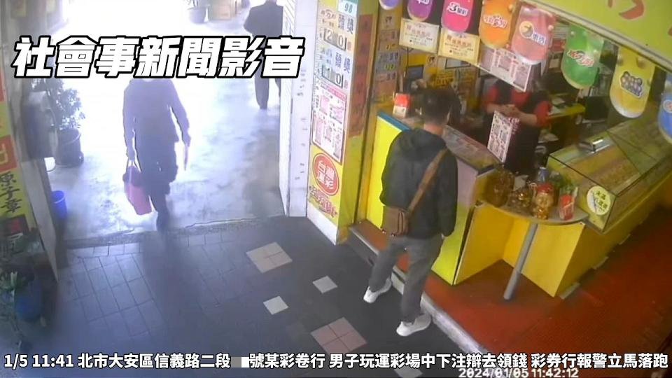 台北市信義路二段的彩券行,5日上午11時許1名男子前往店內,先查看美國NBA職籃機台後,到櫃檯向店員表示要投注2萬元,針對金塊隊與勇士隊比分,並稱稍後會付款給店家,沒想到比賽結束後,男子投注比賽並未中獎,竟藉故領錢為由逃離彩券行,店家不甘損失向警方報案。