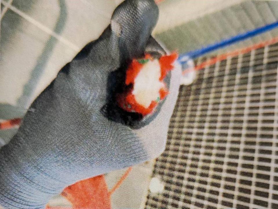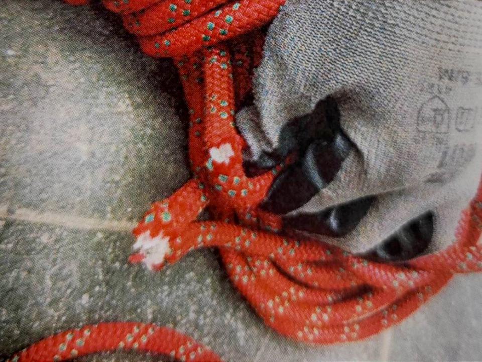 陳嫌以美工刀割斷高空作業繩。讀者提供