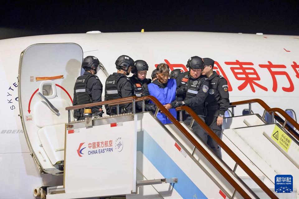 10名緬北重大犯罪嫌疑人在被押解回中國。新華社記者 殷剛 攝
