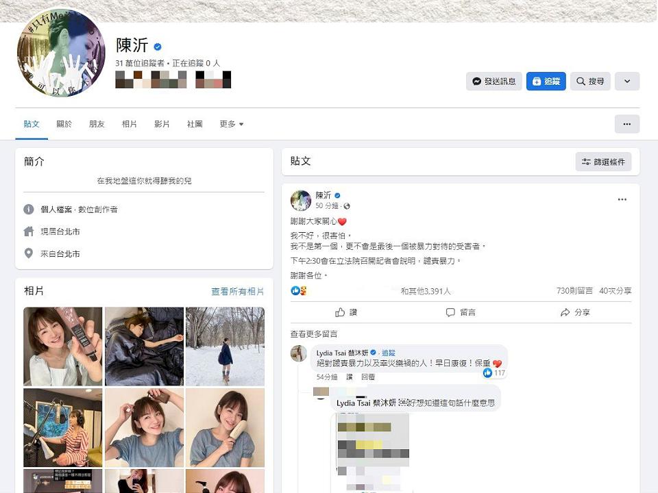 網紅陳沂臉書表達這次受害的心情陰影。翻攝陳沂臉書
