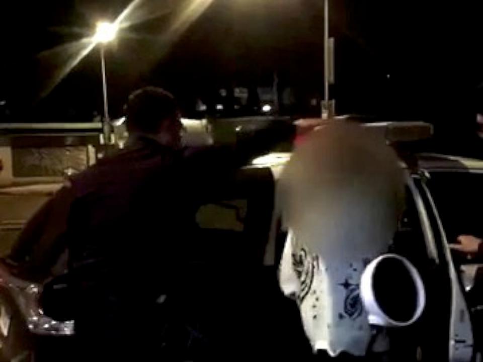 警方對王姓駕駛進行酒測。讀者提供