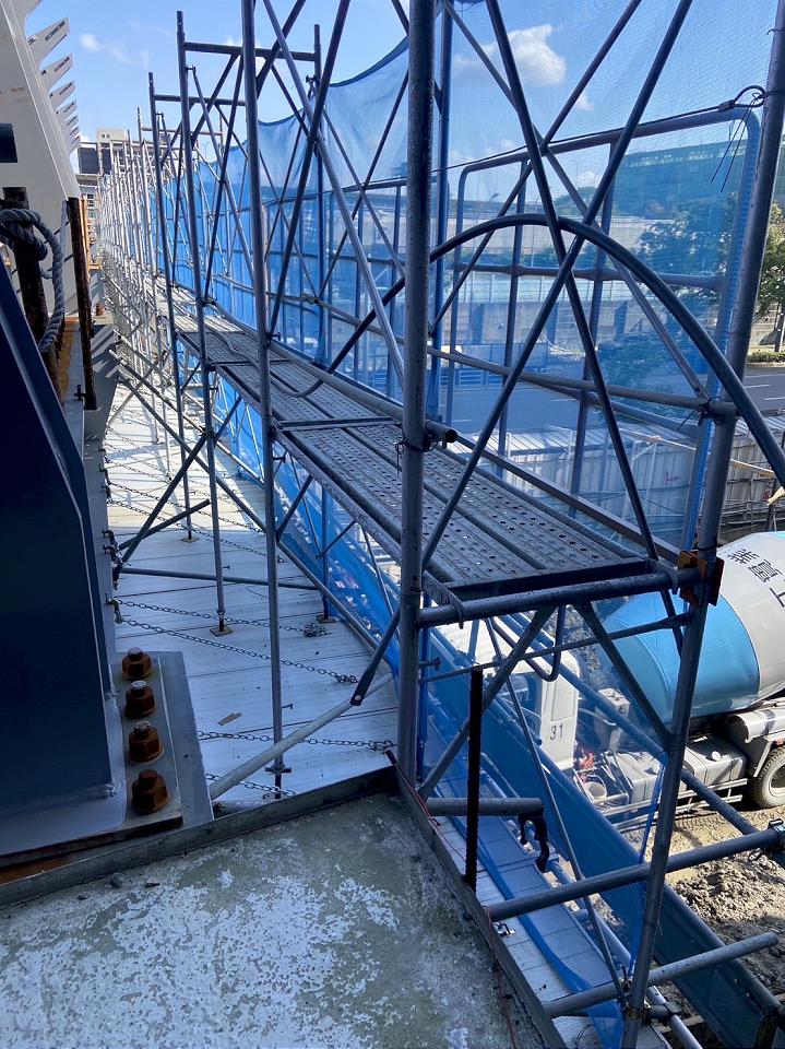 竊賊爬鷹架進入工地偷竊電纜。讀者提供