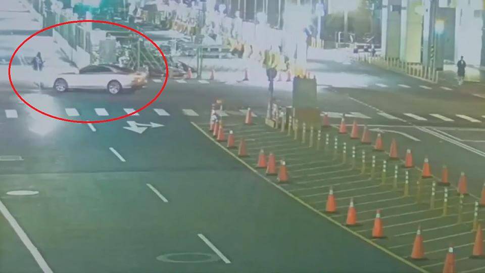 根據監視器畫面,當時林姓駕駛開車,沿著中正路往火車站方向行駛,來到南平路時直接左轉,與對向直行的機車許姓騎士、黃姓乘客發生車禍,撞擊瞬間機車上2人拋飛,1頂安全帽更是撞到脫落,現場機車、汽車零件四散。