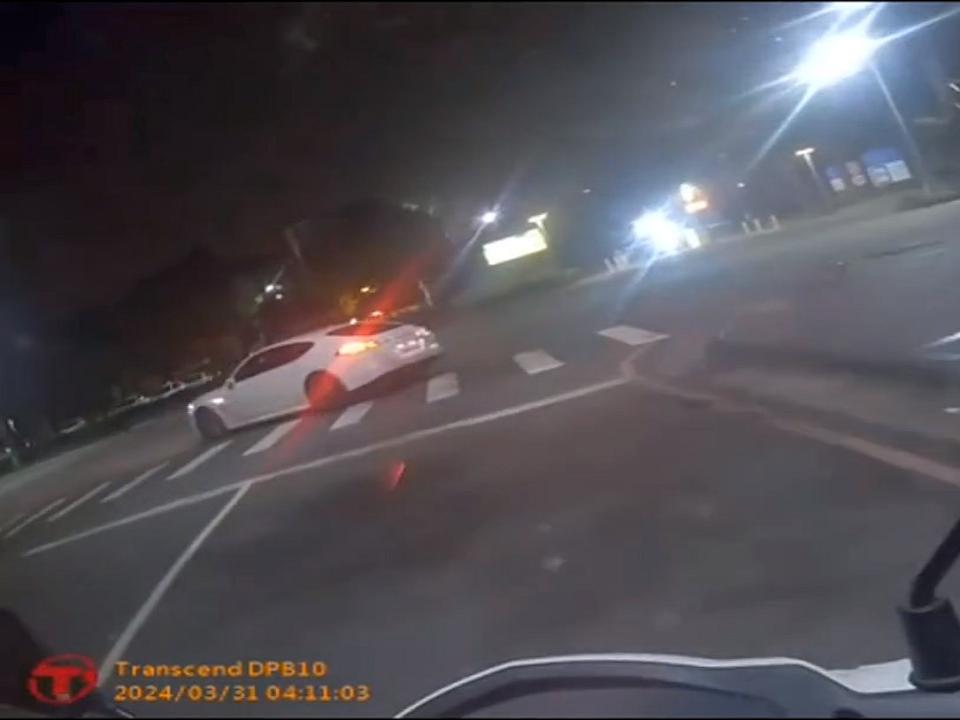 警方表示,保時捷阮姓駕駛31日凌晨4時許,車輛停放在南屯區向學路與大觀路口,由於是在夜店附近,因此警方加強巡邏,不料阮男見到員警機車接近,突然從路旁直接來個大迴轉,員警發現後尾隨準備攔查,當員警揮手示意阮男停車,並將車輛停放保時捷車前時,阮男疑似酒醉沒控制好距離,直接撞上警用機車尾,還好員警反應快跳車,僅右腳踝扭傷。