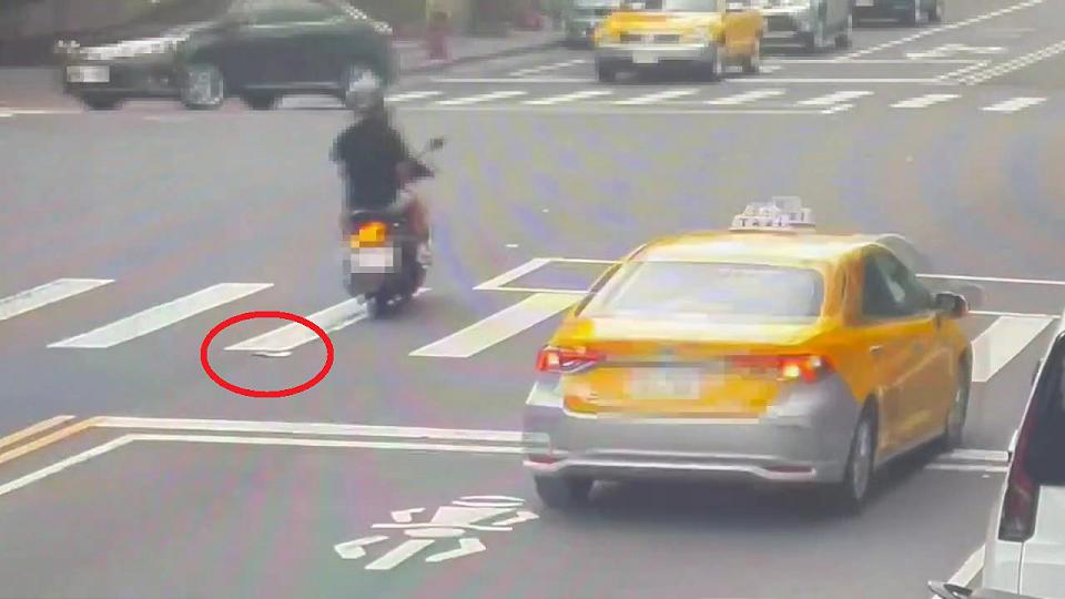 騎士疑似從口袋中掉落現金在馬路中。讀者提供