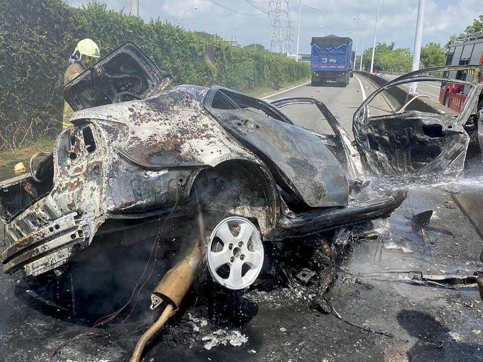 警消抵達現場時,小客車已經全面燃燒,火勢相當猛烈,警消立即鋪設水線全力灌救,所幸火勢很快就被撲滅,但在進行車內查看時,赫然發現2具焦屍,因此交由警方調查死者身分,以及車禍發生原因。(記者黃子瑋/台南報導)