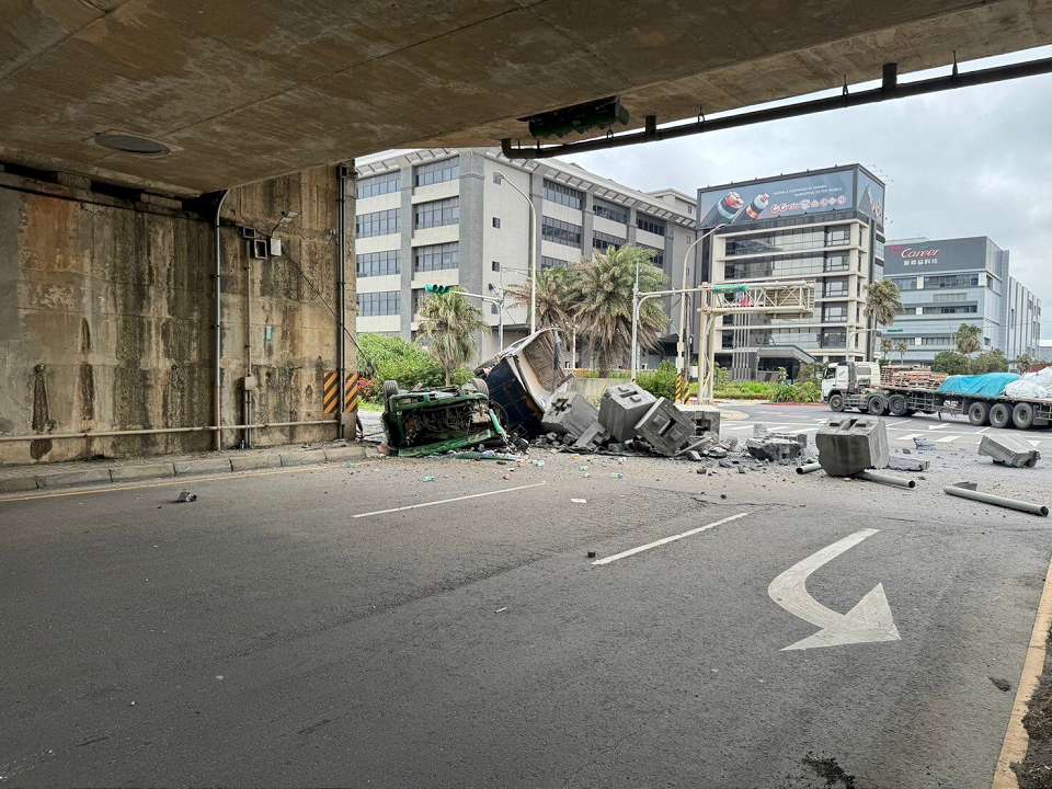 根據了解,這輛砂石車當時行駛在台61線高架段,來到桃科十路、白玉北路口時,突然車輛失控衝破水泥護欄,整台車直墜10公尺下的平面道路,車頭整個被壓扁,後方車斗則橫躺在路中,警消抵達時發現,駕駛已經被彈出車外,已經沒有生命跡象,緊急將人送醫救治,所幸車禍發生時沒有波及平面車道上的人車,相關事故發生原因還需要調查。(記者曹家維/桃園報導)