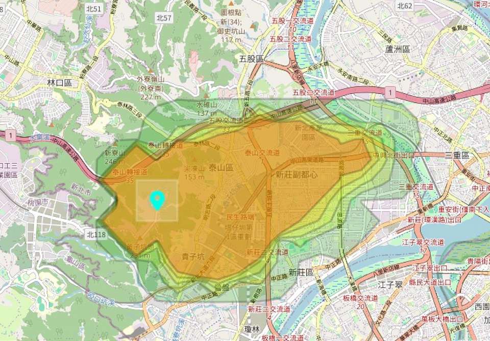 新北市環保局模擬空污可能影響範圍。翻攝新北市政府