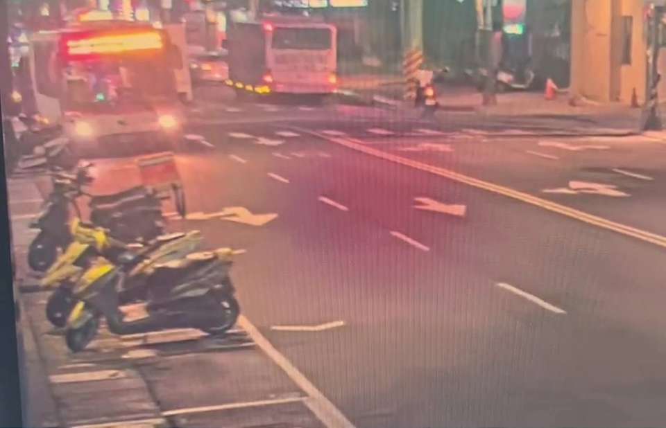 公車駕駛疑恍神撞擊路邊機車。讀者提供