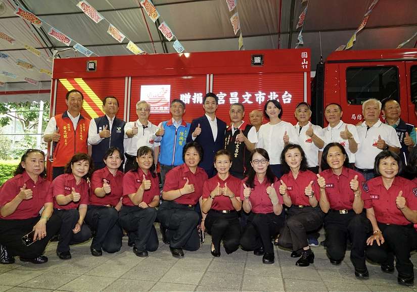 為充實臺北市救災能量,香火鼎盛的臺北市文昌宮,昨(6)日捐贈一輛近700萬元的大型水廂消防車,由臺北市長蔣萬安代表接受。蔣萬安盛讚文昌宮是臺北市政府最重要的夥伴,相信這輛水箱消防車加入後,未來在救災上一定可以發揮最大的效益。