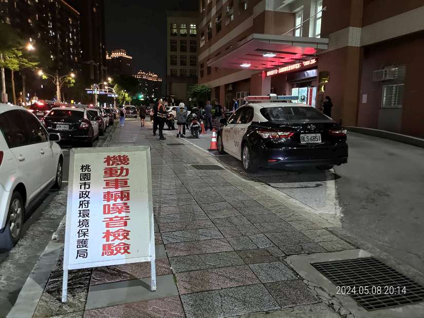 桃園市政府警察局於8日晚間在桃園分局前廣場設立檢測點,適時一名夏姓駕駛自稱機車排氣管日前發生交通事故被撞斷,未於理會,結果測出噪音為105分貝,超標21分貝,被開罰3000元罰鍰外,還要進行複驗。