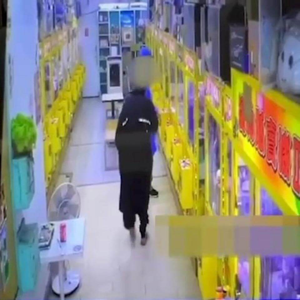 竊盜集團鎖定娃娃機店兌幣機下手,卻因觸動警報器嚇得落荒而逃。畫面讀者提供