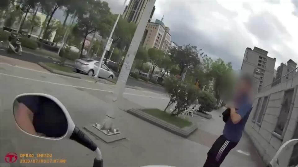 警方騎車追起黃嫌,並將人壓制在地逮捕。畫面讀者提供