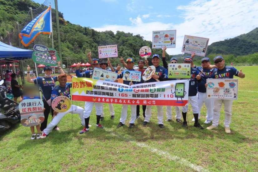 此次活動中各隊好手齊聚交流,現場也吸引了眾多壘球愛好者前來為球員加油,在溫暖的陽光照耀下,大武警分局員警與義警南興小隊利用中場休息時間,手舉牌宣導反詐騙及交通安全,詐騙集團詐騙手段不斷推陳出新,常利用人性弱點,結合時事更新詐騙手法,民眾若遇疑似詐騙狀況時,務必即時撥打 165 反詐騙專線或110 報案電話諮詢。